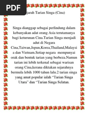 1st - 6th grade. Tarian singa menjadi adat di negara China Jepun Korea Thailand Malaysia dan Vietnam. Tarian Singa Other contents.